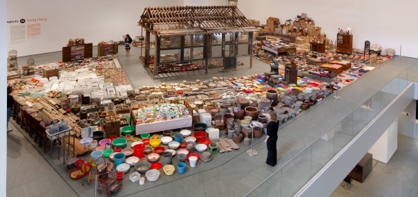 Song Dong è un artista concettuale che per “Waste not” ha esposto l’abitazione in legno appartenuta alla madre e gli oggetti che lei aveva raccolto nel corso di 50 anni, secondo una disposizione ordinata, per categorie. La foto si riferisce all’installazione di “Waste not” al MOMA, New York, nel 2009.